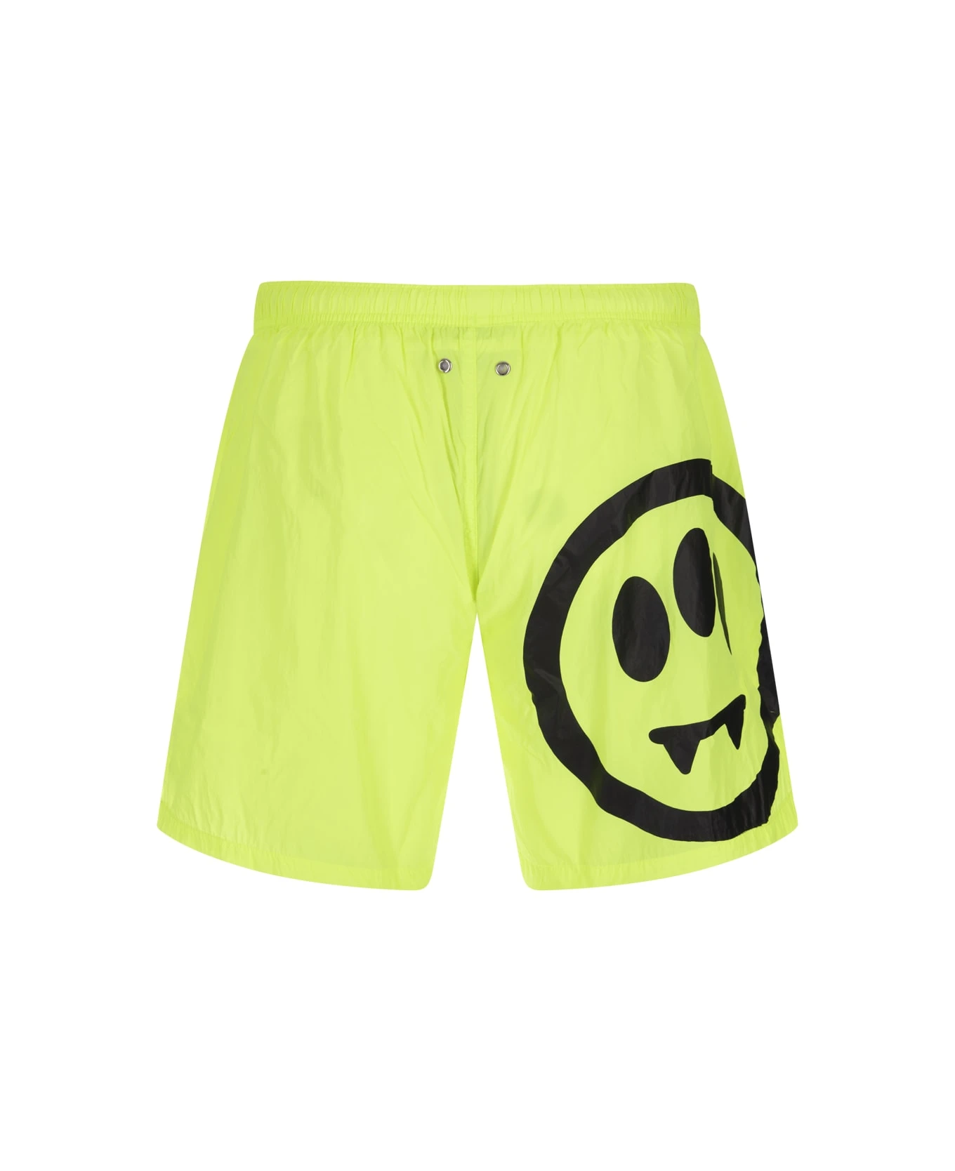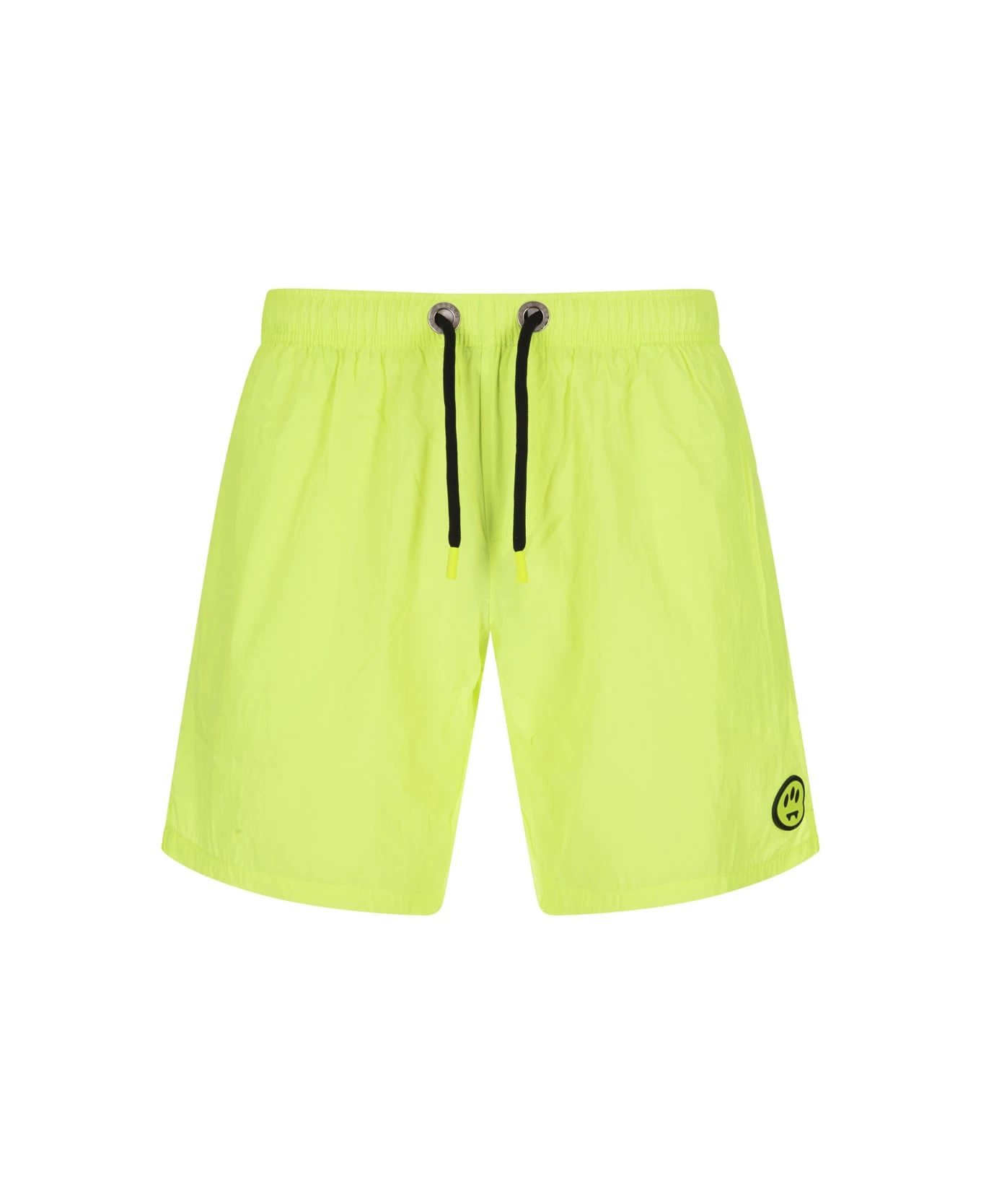 Barrow swim shorts made of fluo yellow nylon with elasticated waist, contrasting drawstring and contrasting logo print on front and back.