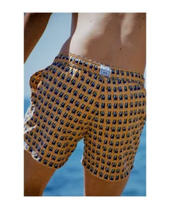 The classic swim shorts were redesigned for a more elegant, tailored look and a comfortable fit. Made from soft, brushed fabric that is quick-drying and has a distinctive cotton-feel. Tying-cord made from braided nautical rope in unbleached cotton. Pattern drawn by hand. Made in Italy.