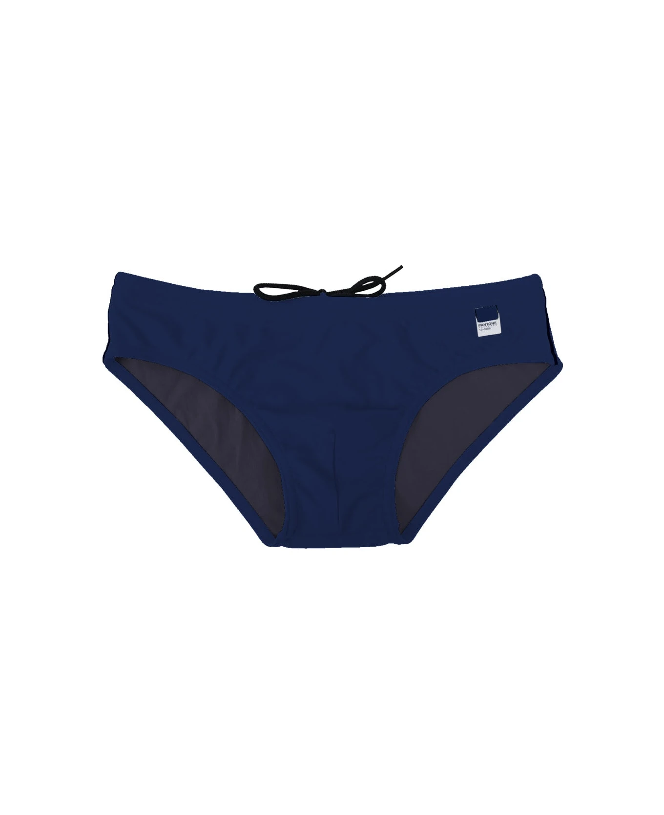 Lycra swim briefs for man, blue Pantone color, Pantone special edition, regular fit, low waist, elasticated waistband and interior drawstring, MC2 brand logo stitched on front at lateral side, inside lining. CARE INSTRUCTIONS