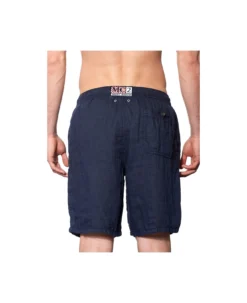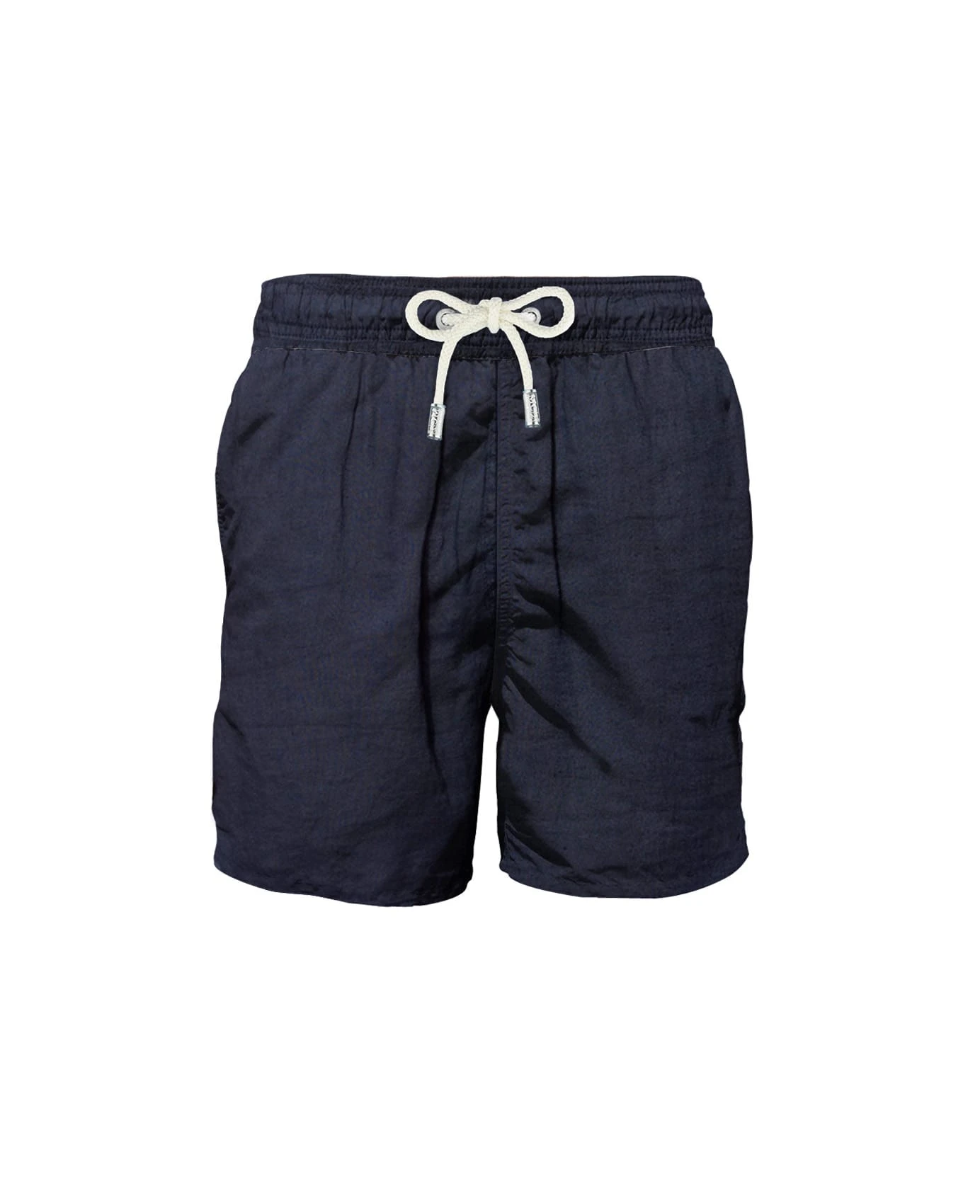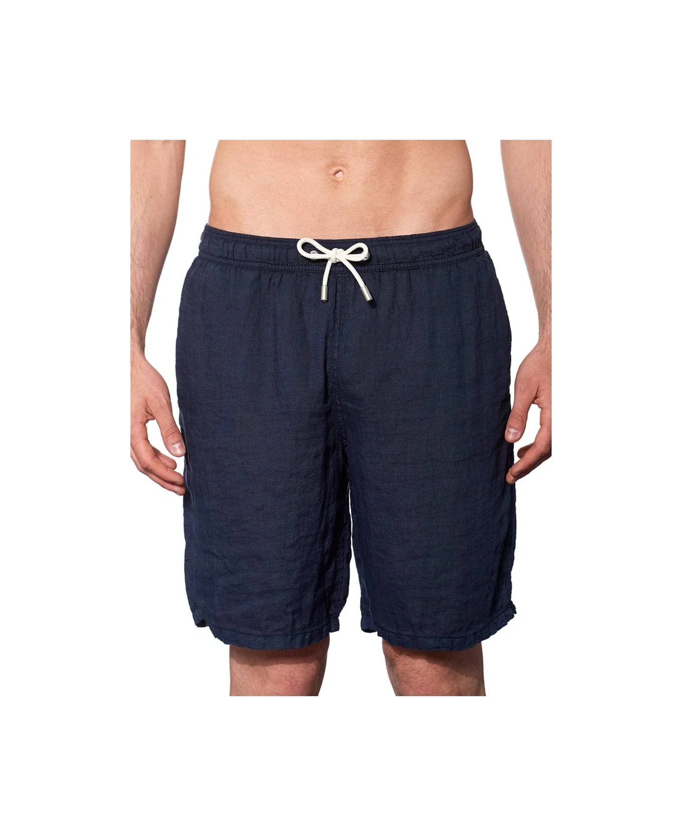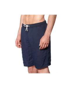 The classic Gustavia swim short is now declined in the 100% natural linen version, for a shabby chic style. Blue linen long swim shorts for men,