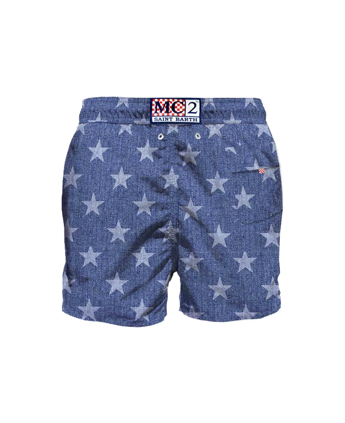 Blue Star all over print, Swim Short mid-lenght, regular fit, blue microfiber, comfortable drawstring waist, inside ergonomic brief, fluo yellow drawcord closure, pockets on both sides, backside classic pocket with velcro closure. CARE INSTRUCTIONS