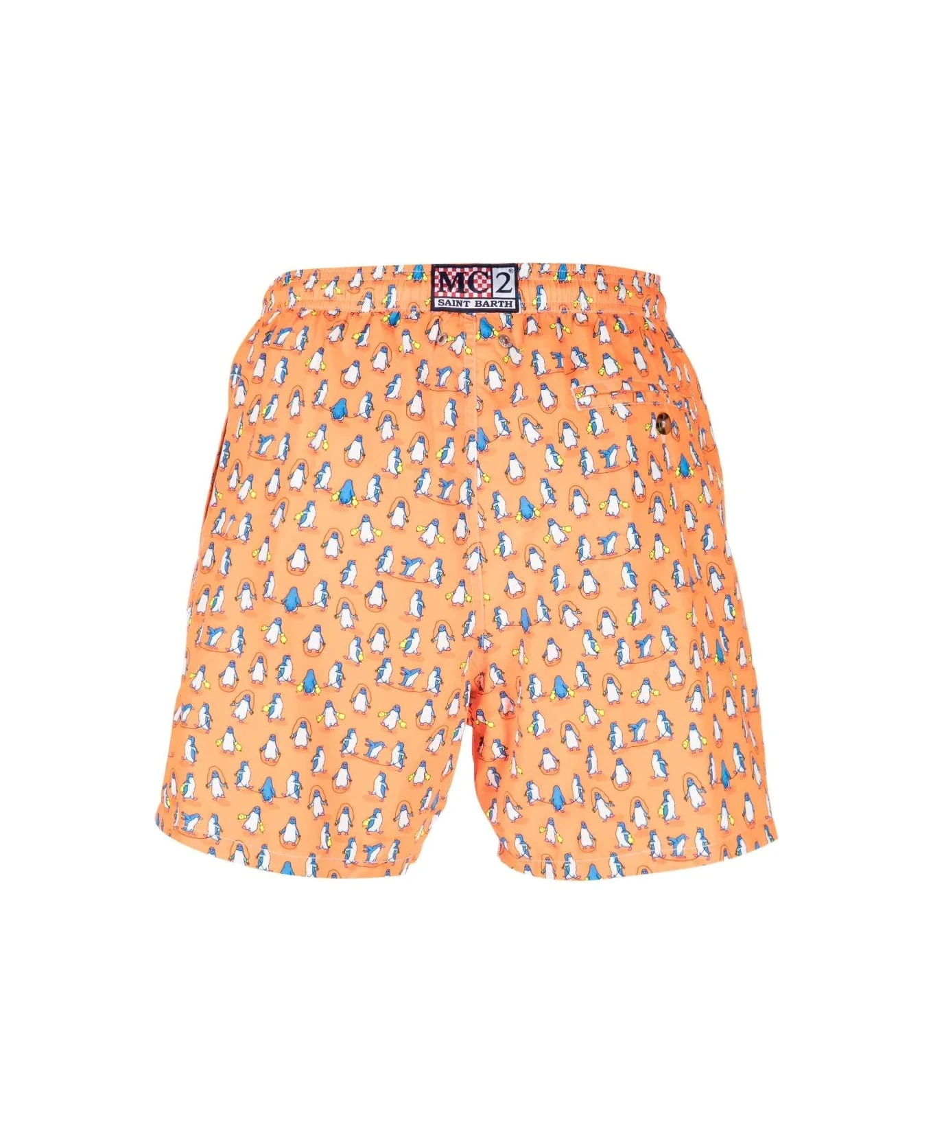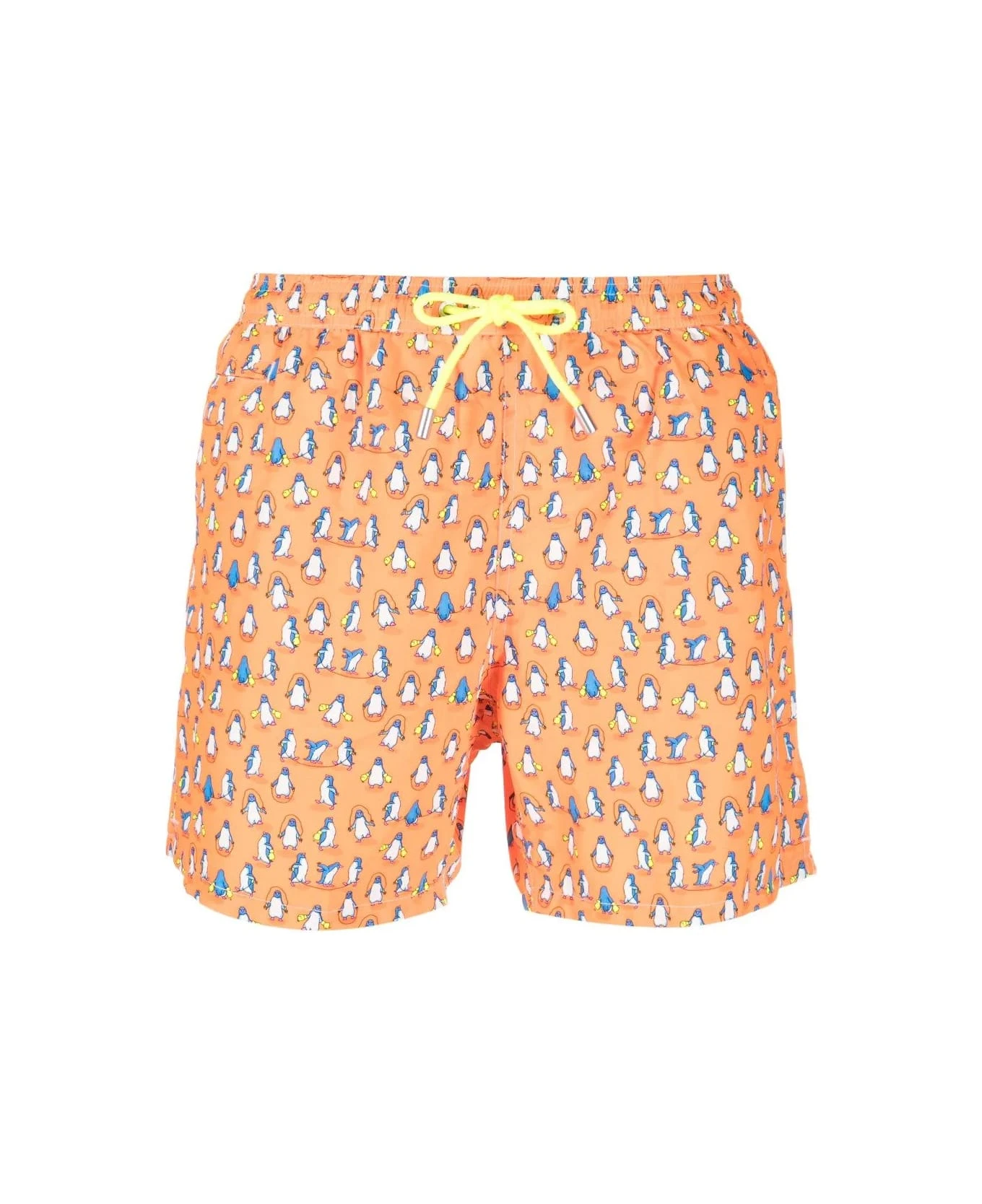 Orange allover printed jumping penguins swim shorts from MC2 Sainth Bart. – fit the true size