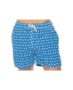 MC2 Saint Barth man’s swim shorts, micro bull terrier all over print on bluette backcloth, light fabric, quick drying, mid-lenght, light net lining, elasticated waistband, drawstring fastening, front and back pocket with button. CARE INSTRUCTIONSCold wash with water and neutral soap. Do not leave to soak. Dry the unfolded garment. Do not dry in contact with other clothes.