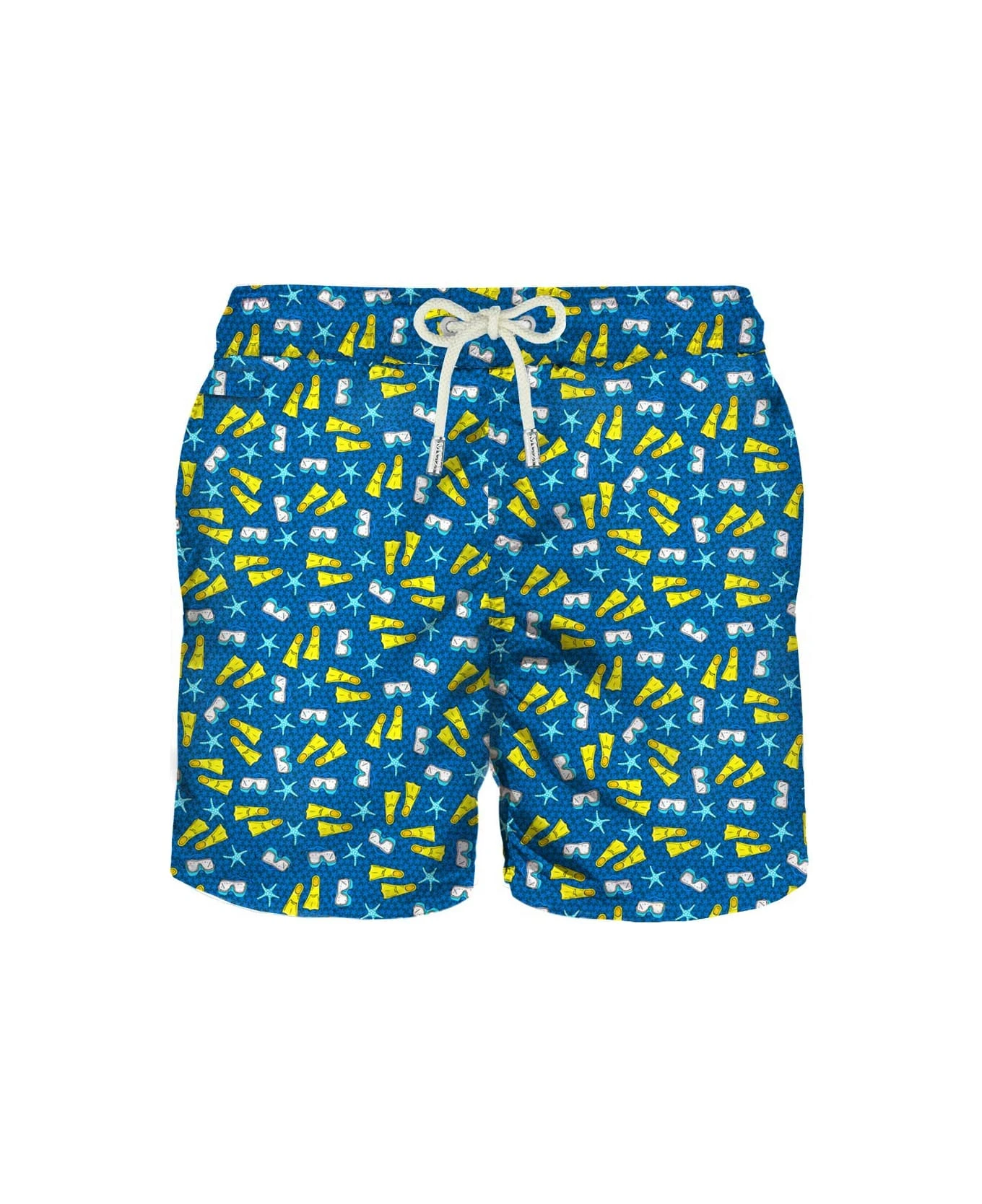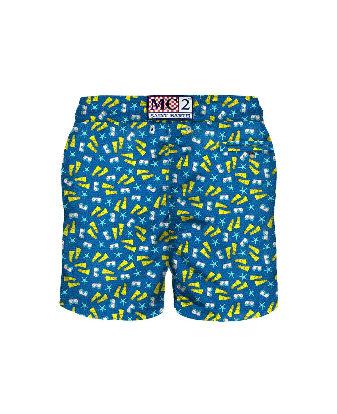 Discover the MC2 Saint Barth spring summer men’s collection! A lot of funny and colored print are waiting for you and your amazing holidays and summer! MC2 Saint Barth man’s classic swim short, yellow micro flippers, sub mask and starfish print