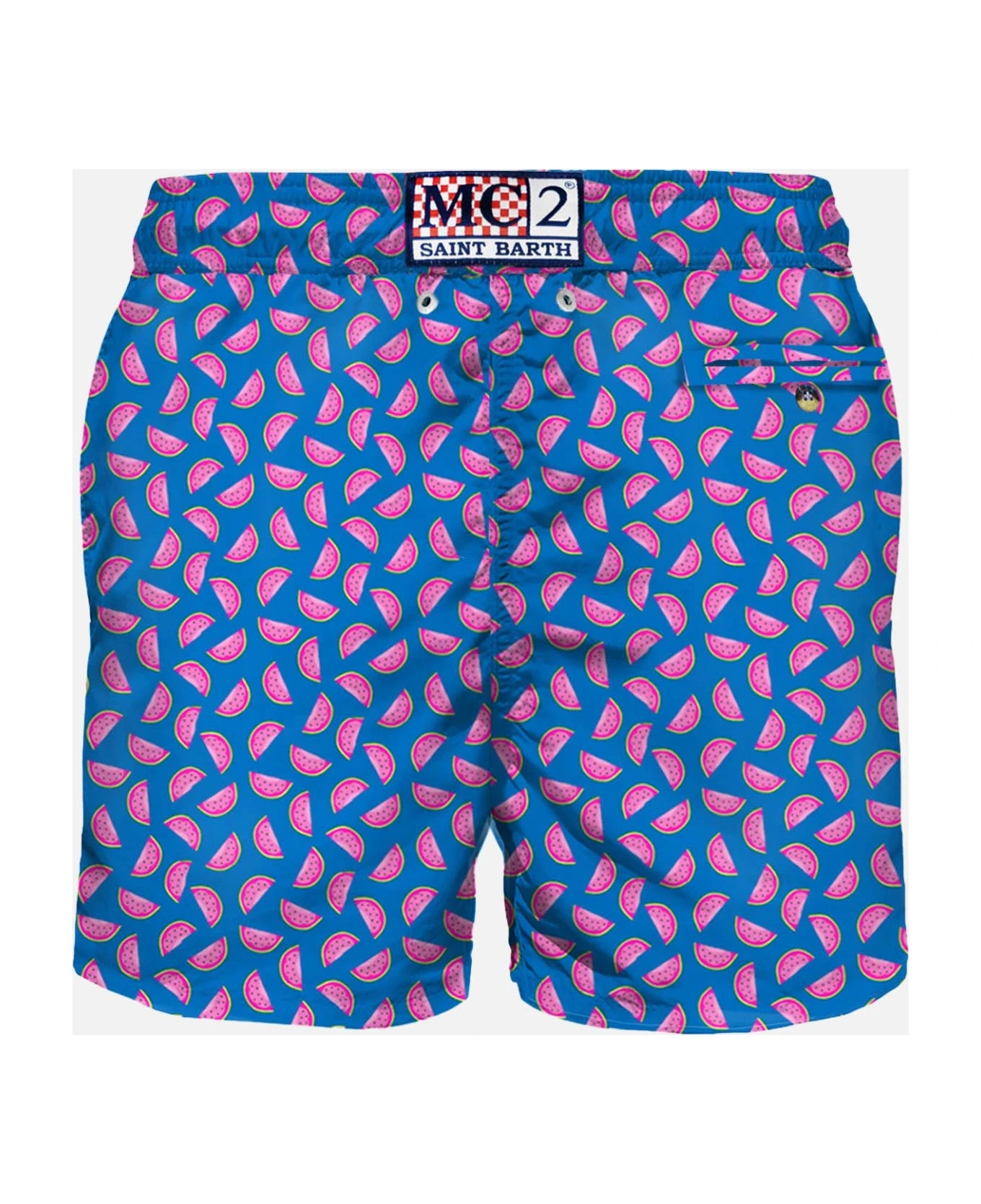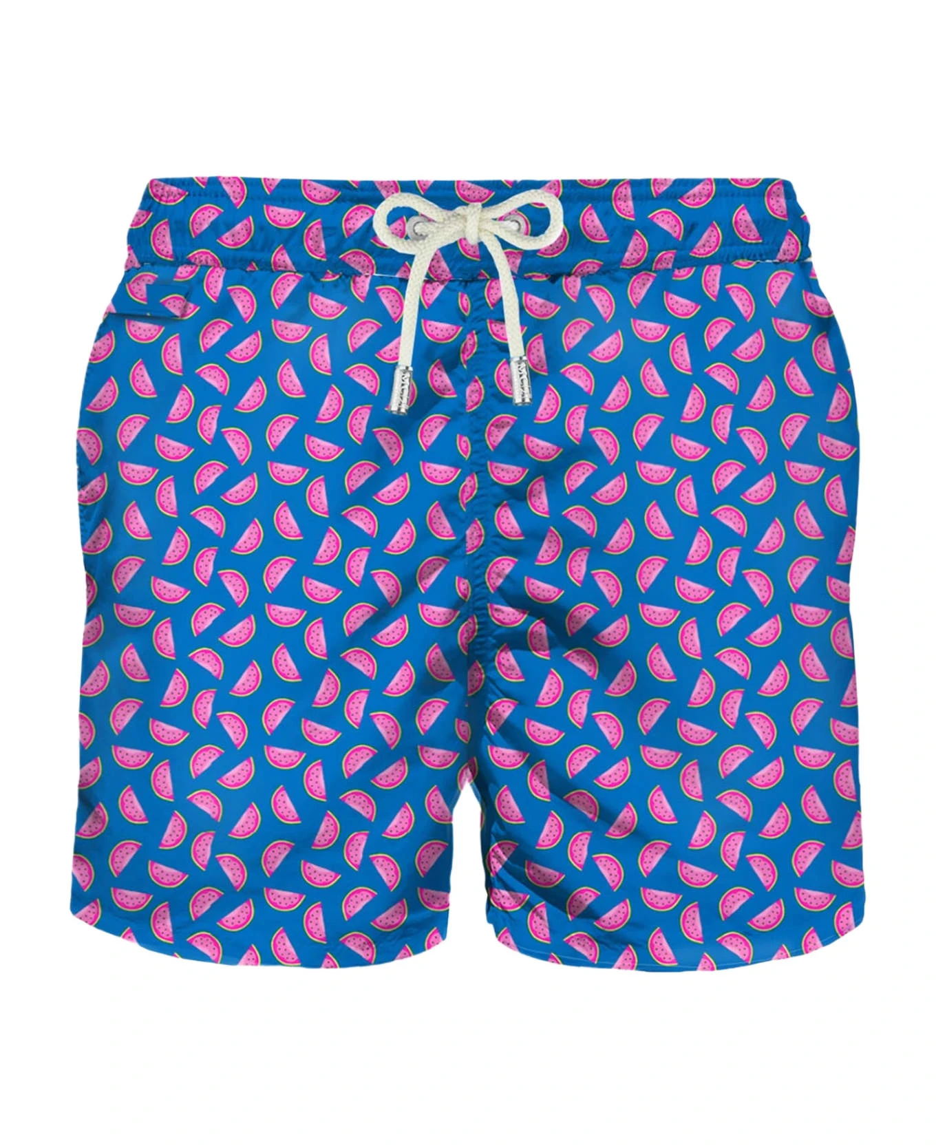 Discover the MC2 Saint Barth spring summer men’s collection! A lot of funny and colored print are waiting for you and your amazing holidays and summer! MC2 Saint Barth man’s classic swim short, fucsia micro watermelons all over print on blue backcloth, light fabric, quick drying, mid-lenght, light net lining, elasticated waistband, drawstring fastening, front and back pocket with button. CARE INSTRUCTIONS