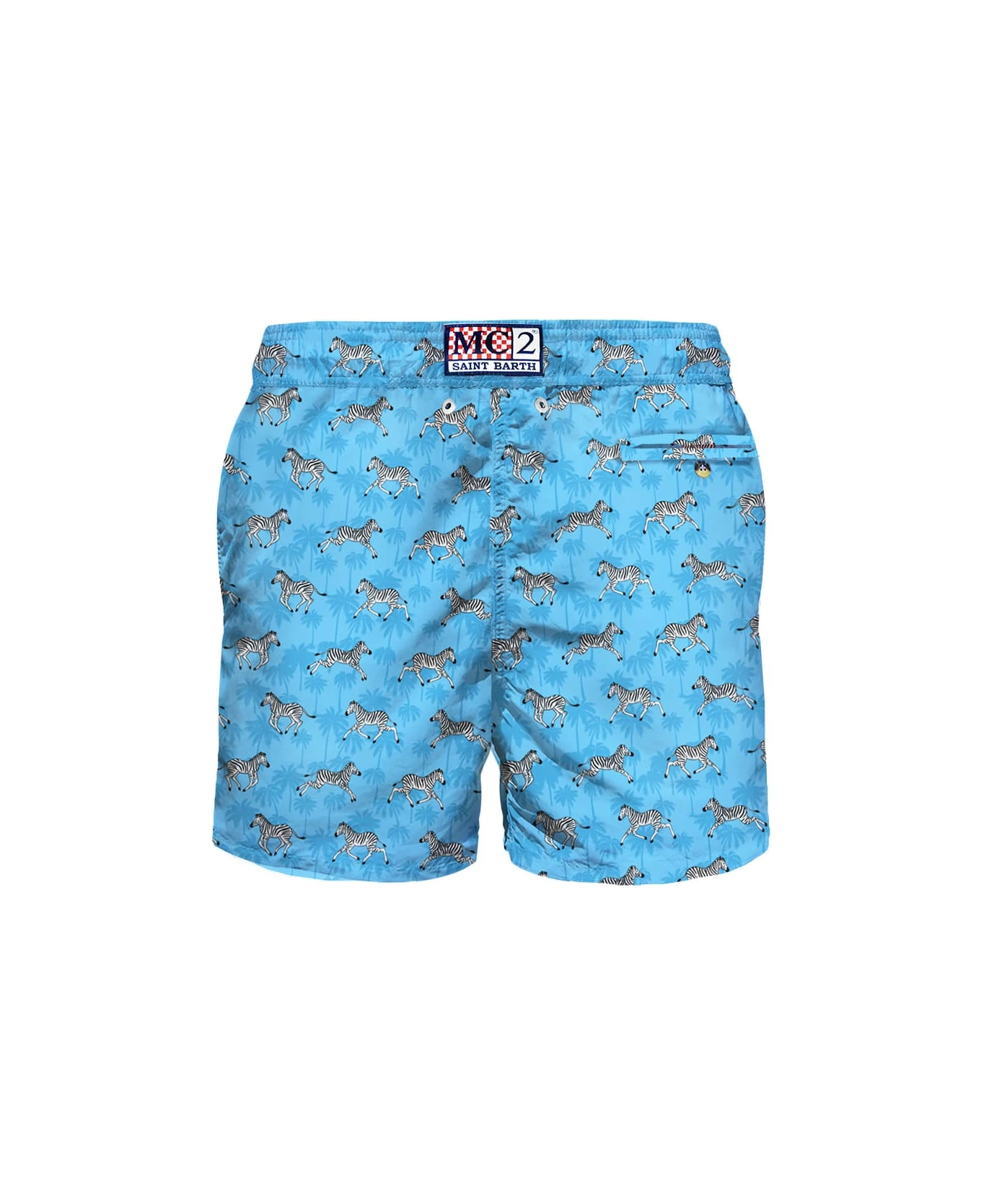 MC2 Saint Barth man’s classic swim short, micro zebra print, ultra light fabric, quick drying, mid-lenght, light net lining, elasticated waistband, drawstring fastening, front and back pocket with button.