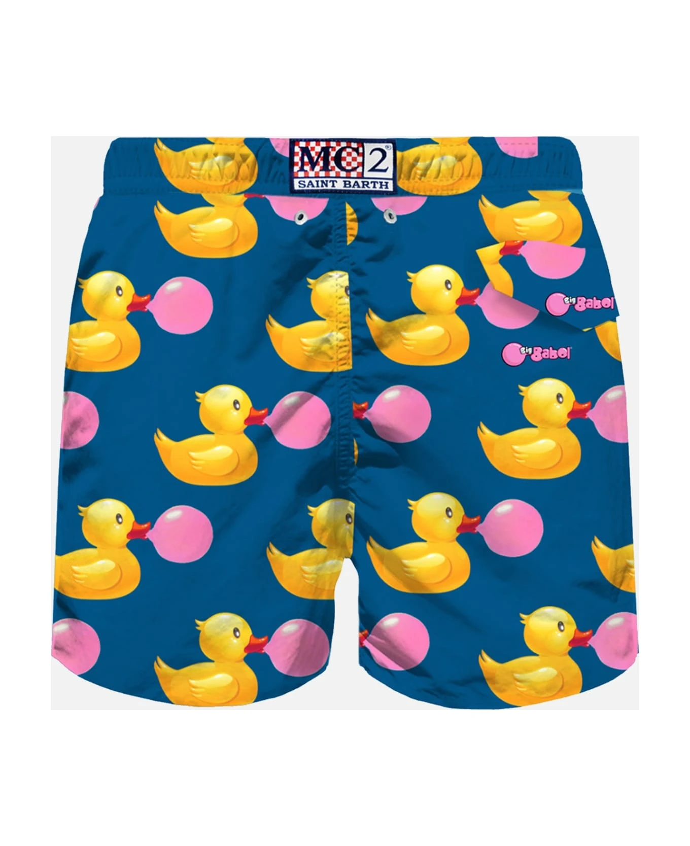 Ducks with Big Babol print on blue background