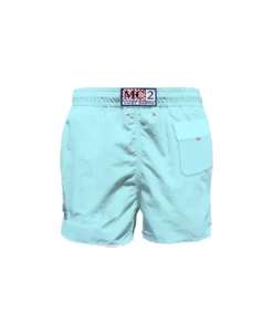 Men’s Swim Shorts mid-lenght, silver microfibre, St. Barth front embroidered, regular fit, velvety hand feel fabric, comfortable drawstring waist, inside ergonomic brief, backside classic pocket with velcro closure. CARE INSTRUCTIONS