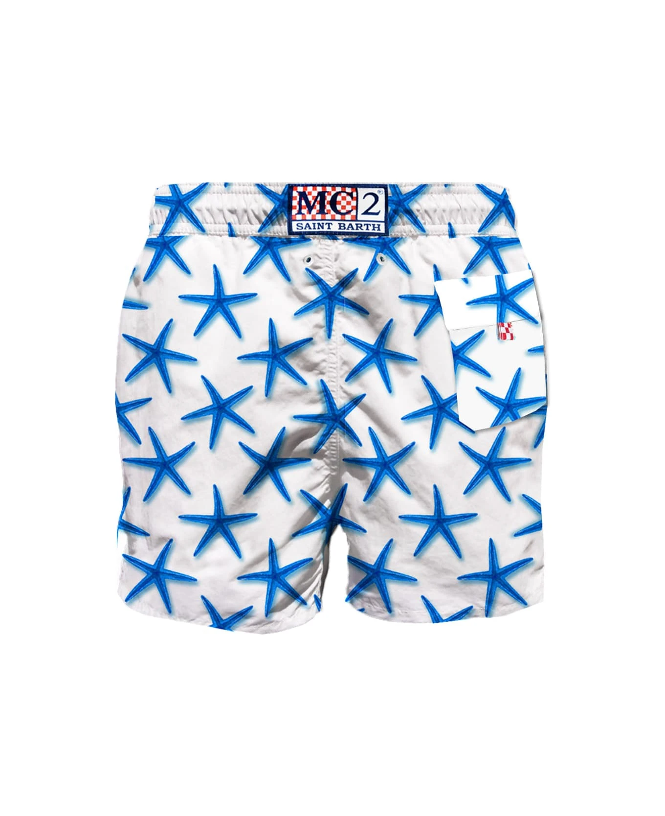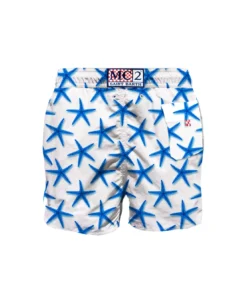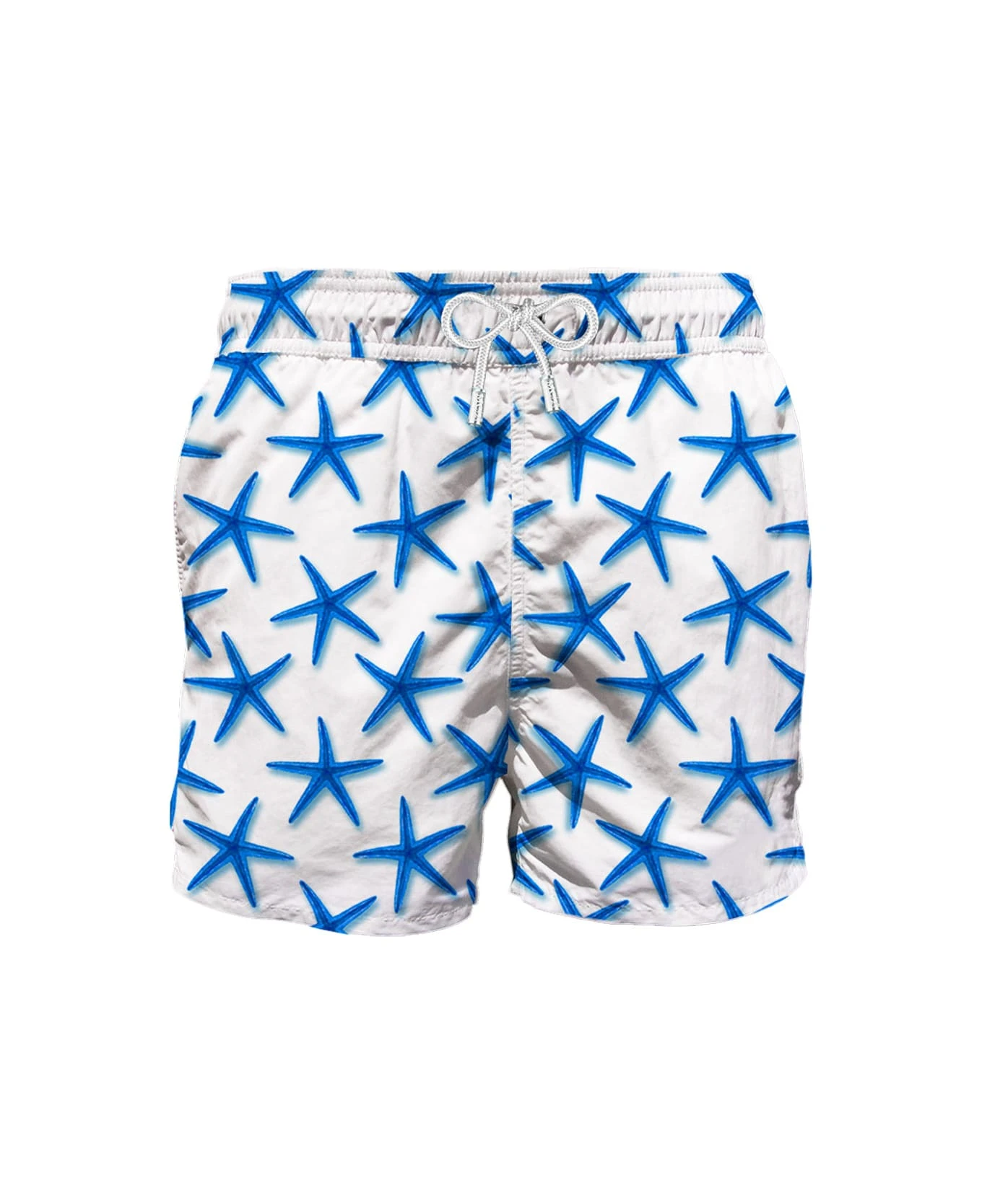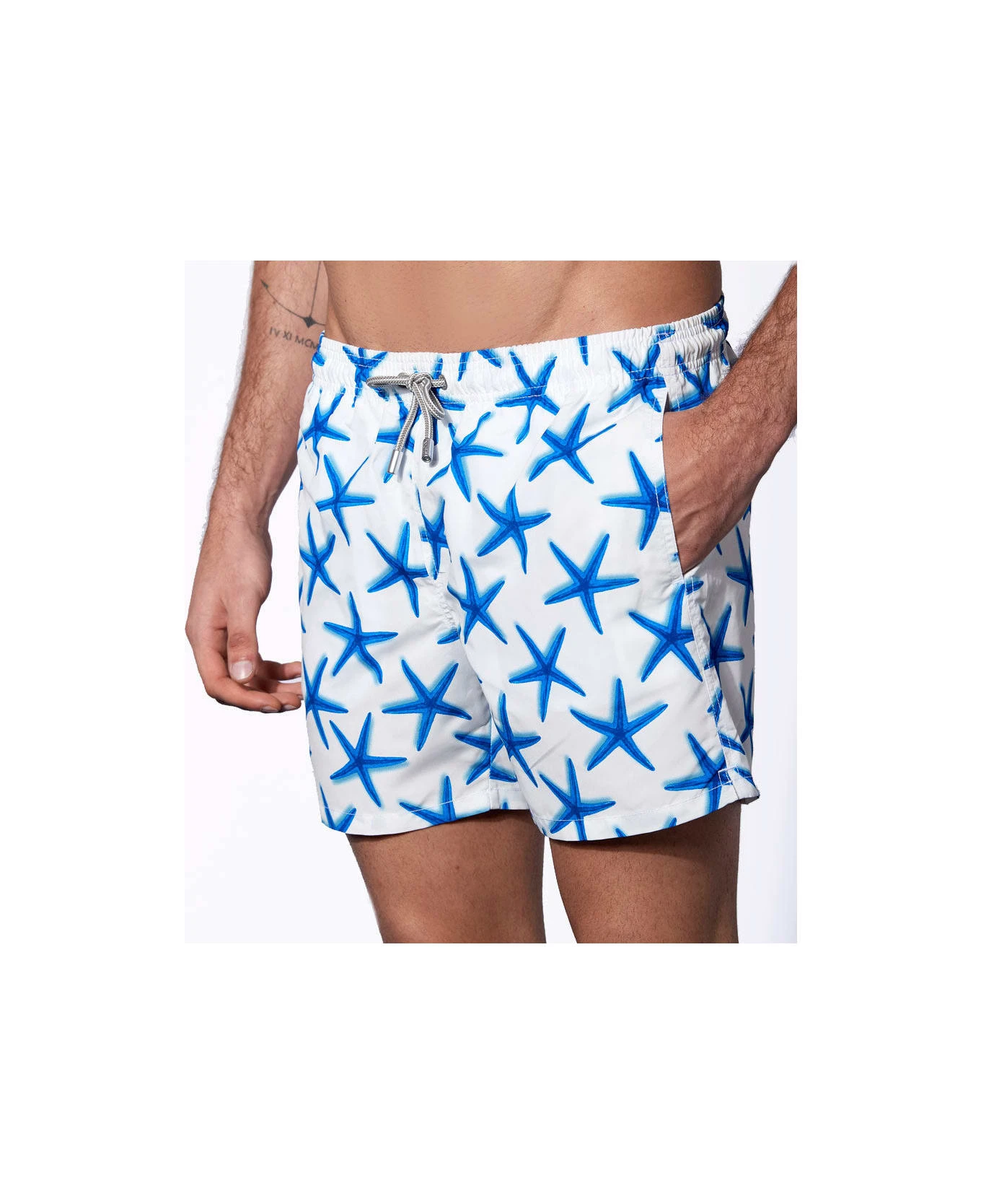 Discover the spring summer men’s collection! A lot of funny and colored prints are waiting for you, for your amazing holidays! Mid-length swim shorts, light blue star fishes all over print, colored fancy on white backcloth, regular fit, comfortable drawstring waist, inside ergonomic brief, drawcord closure, backside classic pocket with velcro closure. CARE INSTRUCTIONS
