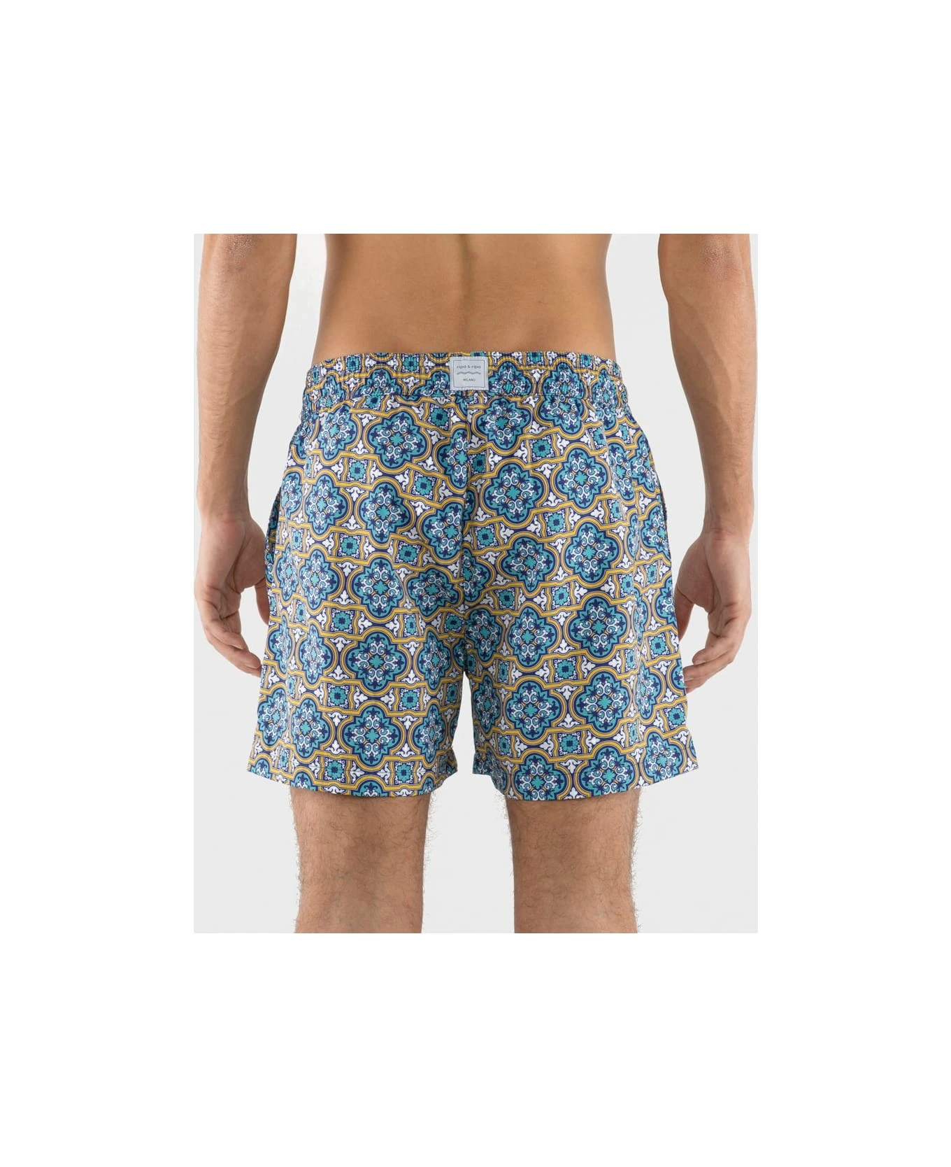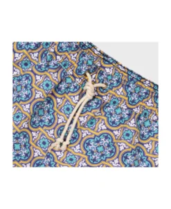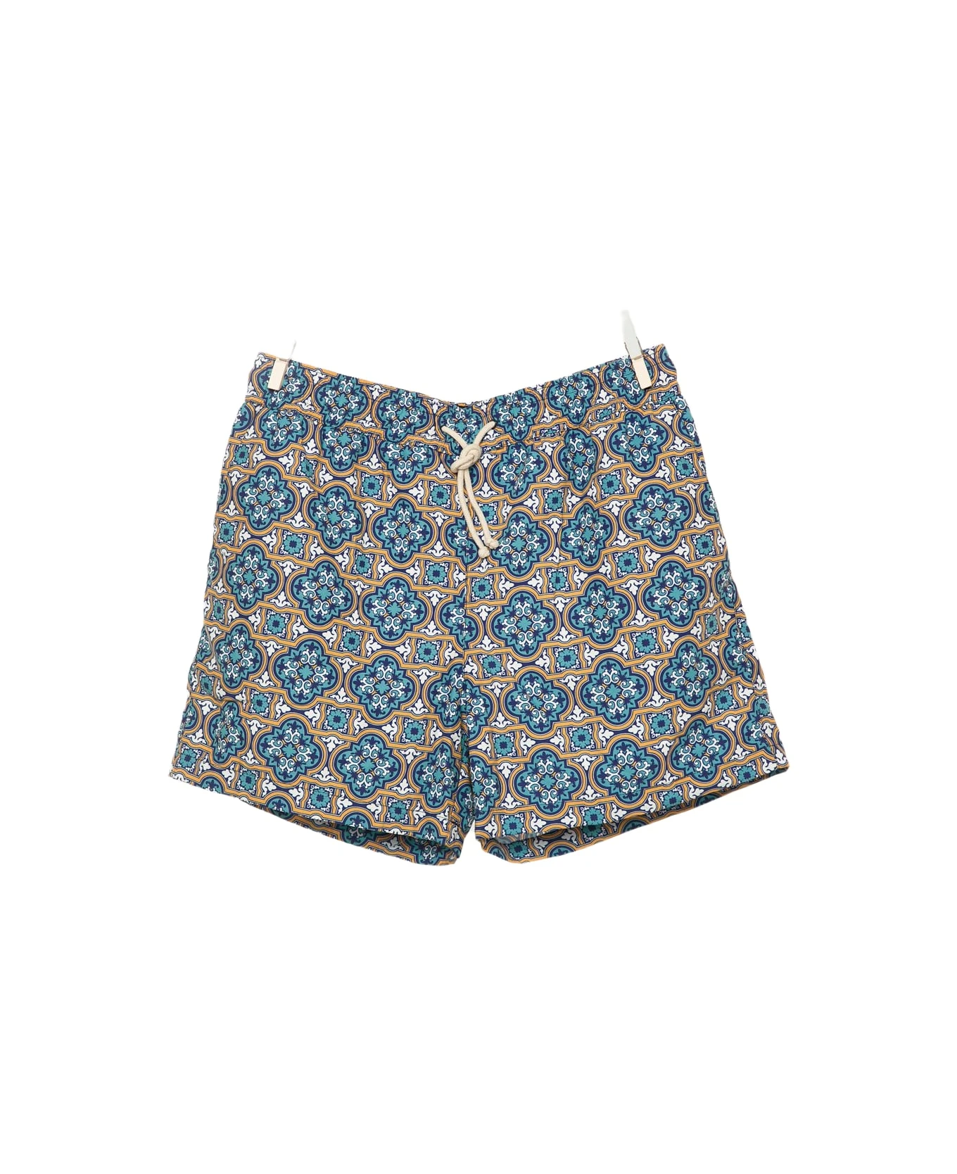 The classic swim shorts were redesigned for a more elegant, tailored look and a comfortable fit. Made from soft, brushed fabric that is quick-drying and has a distinctive cotton-feel. Tying-cord made from braided nautical rope in unbleached cotton. Made in Italy.