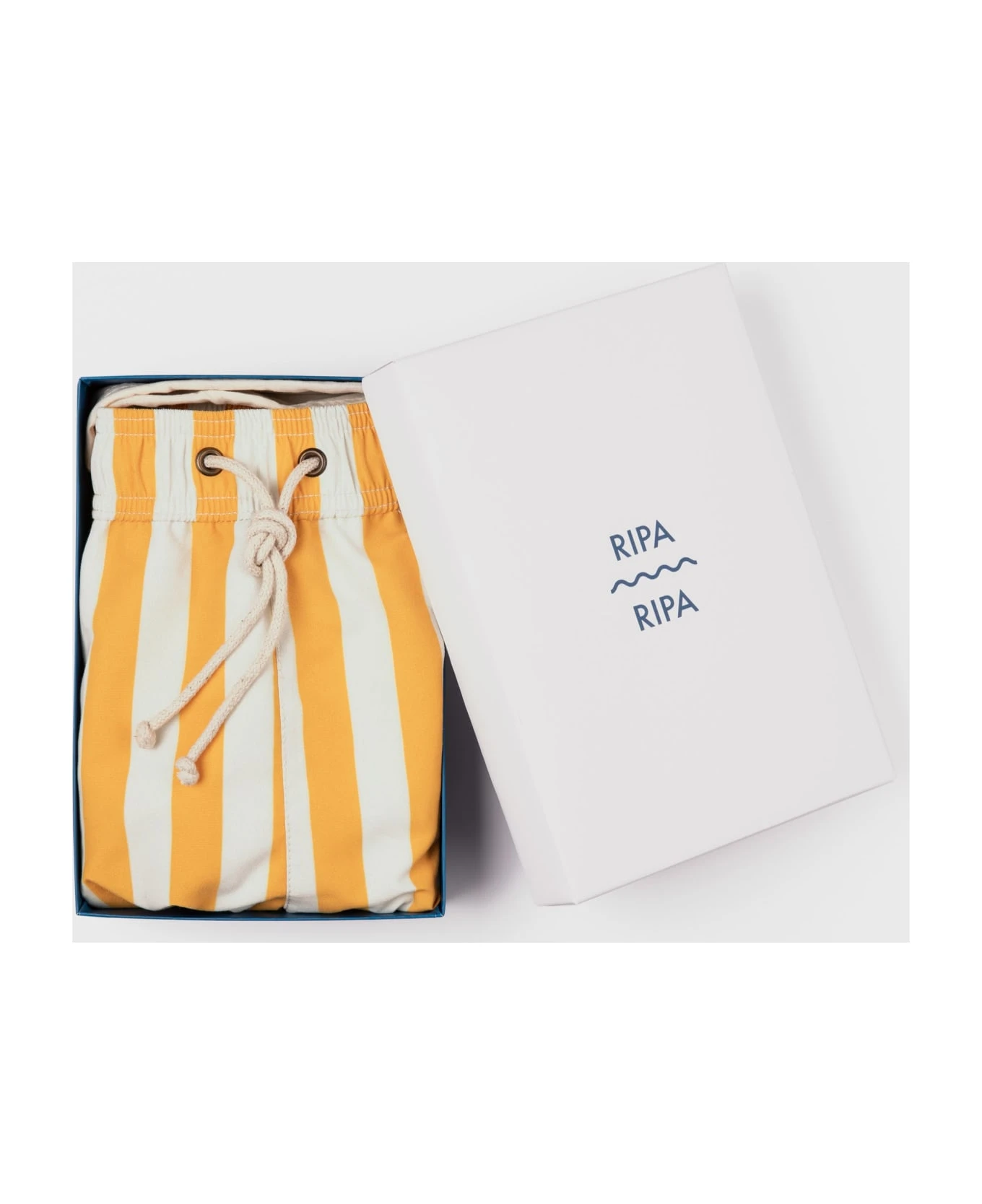 The classic swim shorts were redesigned for a more elegant, tailored look and a comfortable fit. Made from soft, brushed fabric that is quick-drying and has a distinctive cotton-feel. Tying-cord made from braided nautical rope in unbleached cotton. Made in Italy.