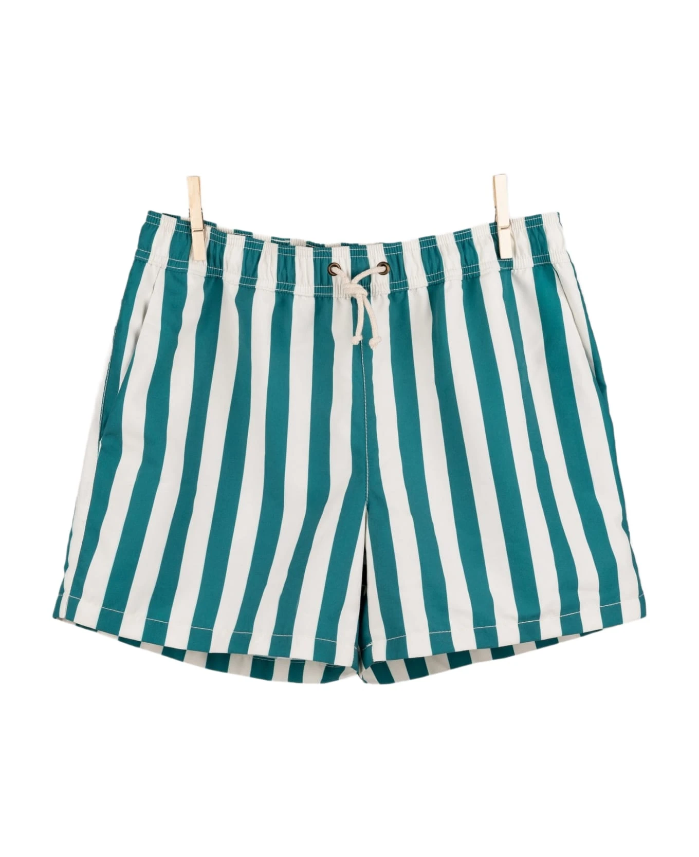 The classic swim shorts were redesigned for a more elegant, tailored look and a comfortable fit. Made from soft, brushed fabric that is quick-drying and has a distinctive cotton-feel. Tying-cord made from braided nautical rope in unbleached cotton. Made in Italy.