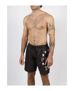 Philipp Plein nylon swim shorts with contrasting print on the left leg. – SS23