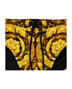 Stretch fabric swim briefs with ‘Baroccodile’ print, elastic and drawstring at the waist.