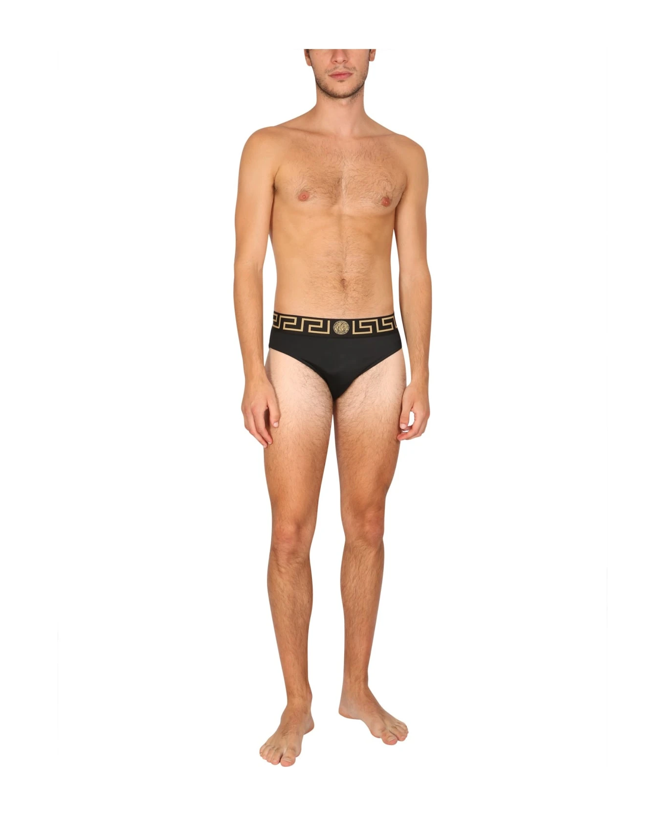 – Elastic Band With La Greca And Medusa Print- Lined Interior With Baroque Print- 78% Polyamide, 22% Elastane- Made In Italy- The Model Is 190 Cm Tall And Wears Size 3