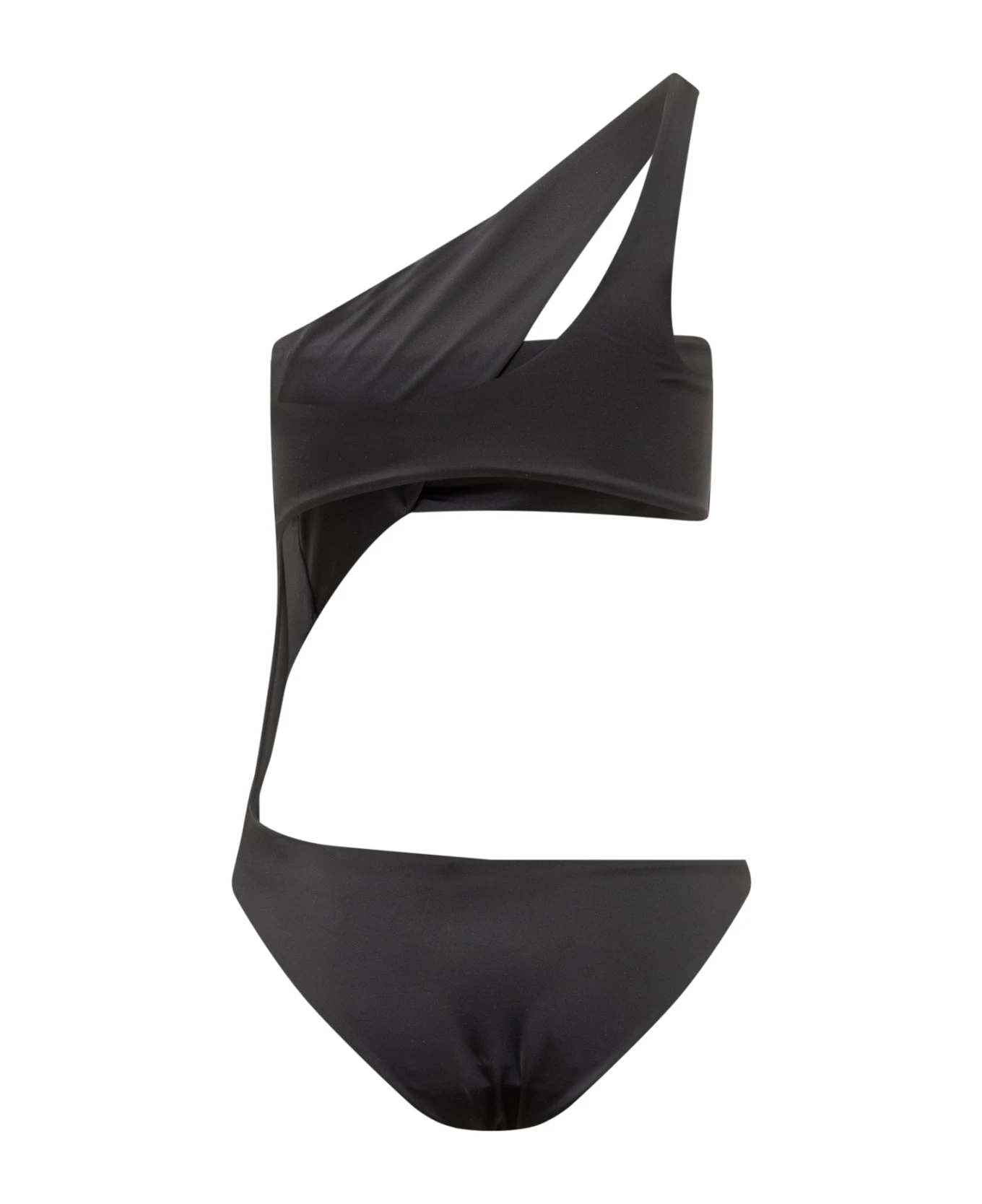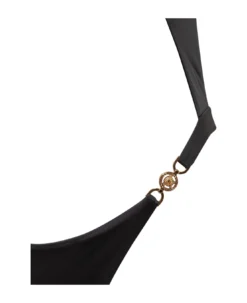 One-piece swimsuit. Stretch fit. Medusa pin detail on the bottom.